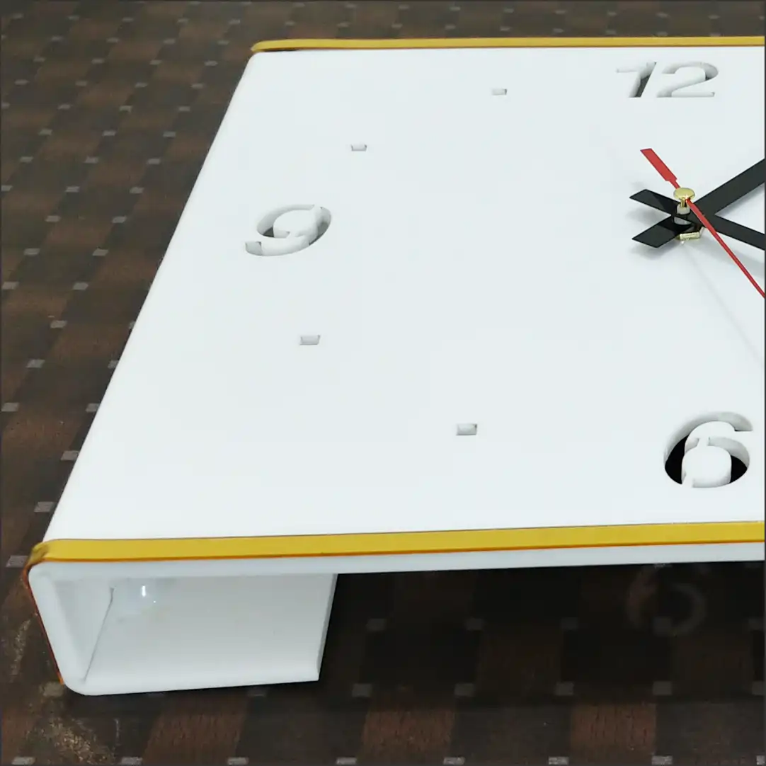 | Square Acrylic Wall Clock Folded Corner with LED Light. The LED wall clock is made of acrylic material which means longer life and lesser hassle of maintenance. The bright LEDs located in the center of the clock effectively light up the numbers and edges, providing a modern and attractive addition to any room. Perfect for a wide range of settings including living rooms, bedrooms, kitchens, offices, and more |