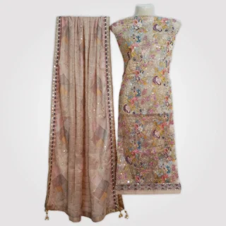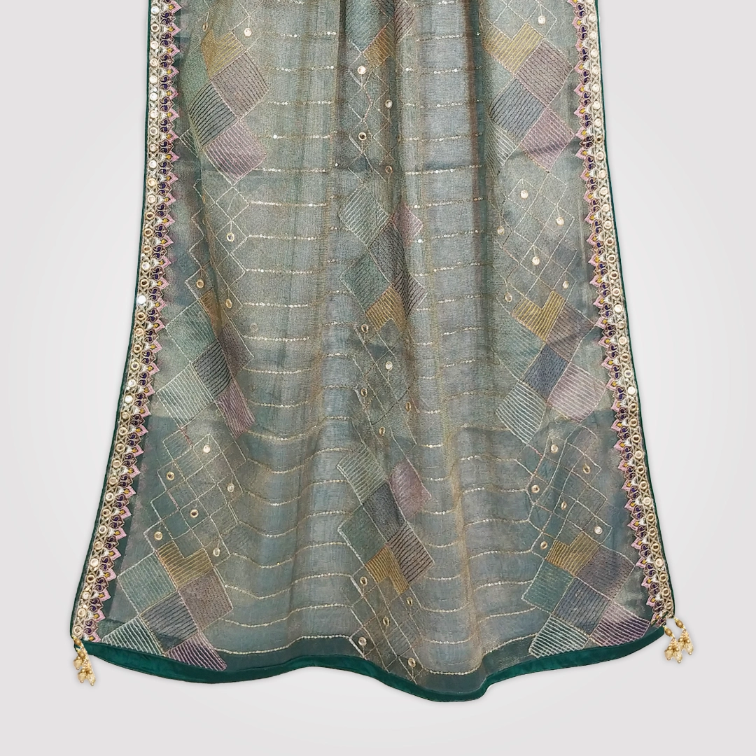 Khadi Net Embroidery Shirt Dupatta.
