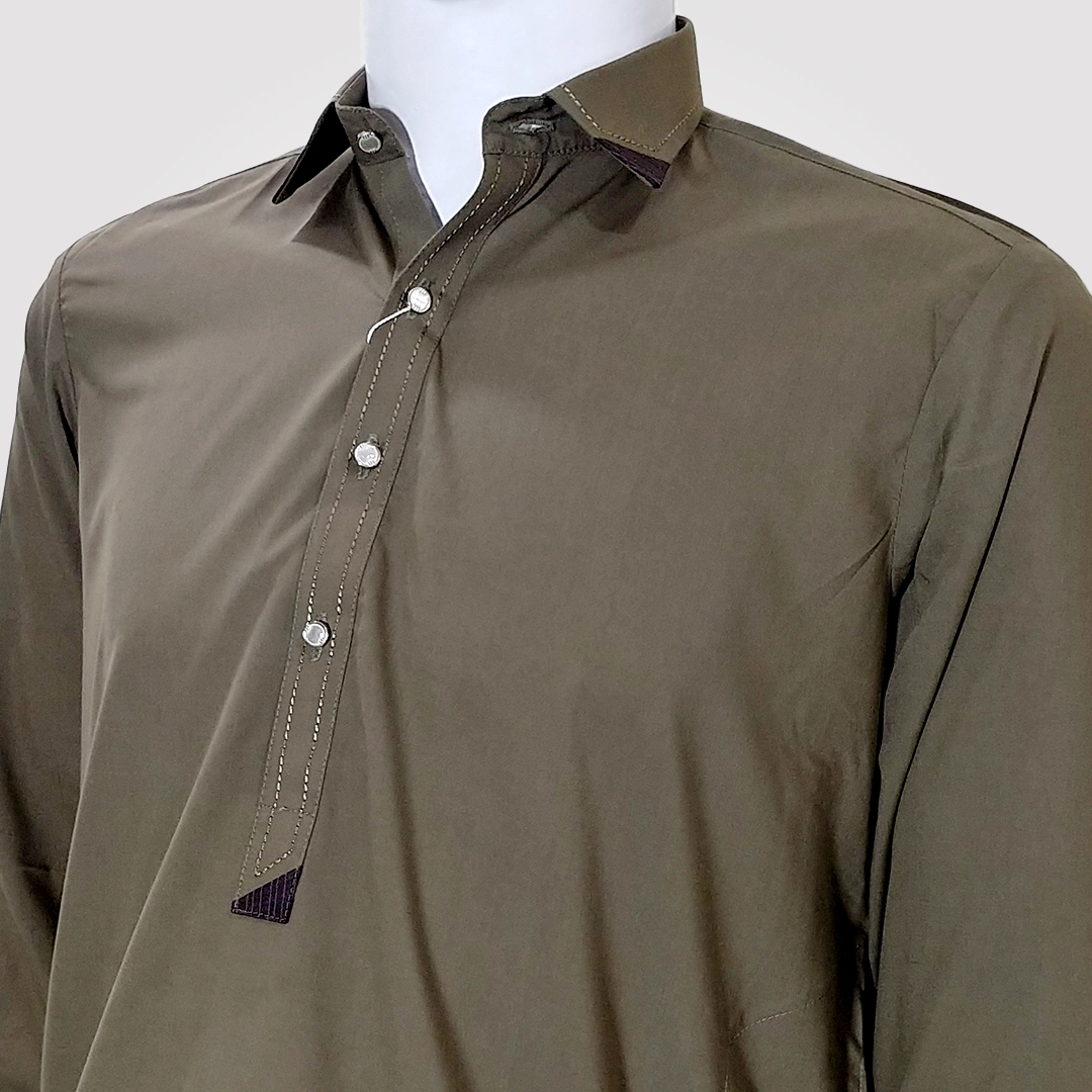 | Tobacco Brown Color Men’s shalwar kameez in Exclusive Texture wash n wear fabric is a perfect blend of comfort, elegance, and practicality. Fabric: Made with Exclusive Texture Wash n Wear, It Gives a Soft and Smooth Feel, is Breathable and Resist Wrinkles. Making it Easy to Maintain. Look: Kameez Shalwar with French Collar. To Enhance the Beauty of the Dress, The Collar has been Adorned with Fabric of a Different Color and Shirt Color Silk Thread. The outfit carries a neat, crisp finish that looks stylish yet simple, suitable for both casual and semi-formal wear. Season: Use in 4 Season. Color: Tobacco Brown Disclaimer: The Color of the Original Product may Slightly Vary from the Picture.Size: Small, Medium, Large, XLarge |