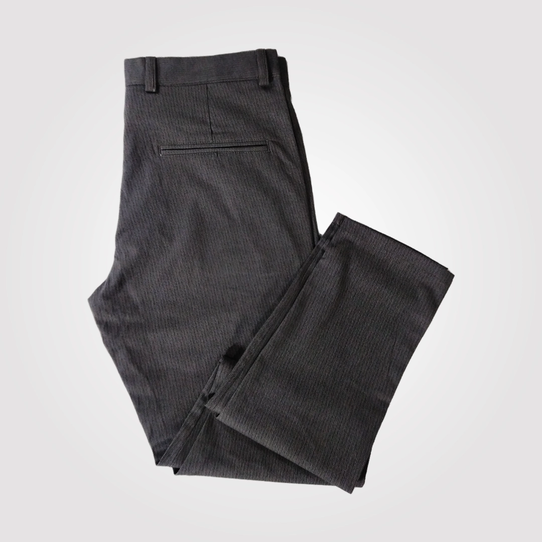 | Premium Quality Stretchable Pant Crafted from a High Grade Blend of Cotton, Polyster, and Elastane, These Pants Offer the Perfect Balance of Softness, Durability, and Flexibility. The Stretchable Fabric Adapts Effortlessly to your Movements, Providing Excellent Freedom and Ease Whether You’re at Work, Traveling, or Enjoy Casual Outing.Line Print Fabric Color: Dark Gray Size: 36 Inches Waist. |